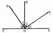 12.如图,AOE是一条直线,OB⊥AE,OC⊥OD。则图中互补的角有( )对。