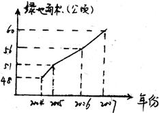 (1)根据图中提供的信息回答下列问题:2007年底的绿地面积为___________公顷(2分),比2006年增加了___________公顷(2分),在2005年、2006年、2007年这三年绿地增加量最多的是___________年。(2分)