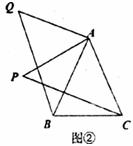 (1)小亮是个爱动脑筋的同学,他通过对图①的分析,证明了△ABQ≌△ACP,从而证得BQ=CP。请你帮小亮完成证明。