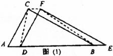 (1)如上图(1),△DEF沿线段AB向右平移(即D点在线段AB内移动),连接DC、CF、FB,四边形CDBF的形状在不断的变化,但它的面积不变化,请求出其面积。