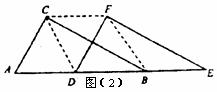 (2)如图(2),当D点移到AB的中点时,请你猜想四边形CDBF的形状,并说明理由。