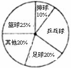 (2)在扇形统计图中,“乒乓球”部分所对应的圆心角是多少度?