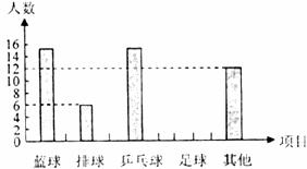 某中学学生会为考察该校学生参加课外体育活动的情况,采取抽样调查的方法从篮球、排球、乒乓球、足球及其他等五个方面调查了若干名学生的兴趣爱好(每人只能选其中一项),并将调查结果绘制成如下两幅不完整的统计图,请根据图中提供的信息解答下列问题: