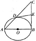 如下图所示,以Rt△ABC的直角边AB为直径作圆O,与斜边交于点D,E为BC边上的中点,连接DE。