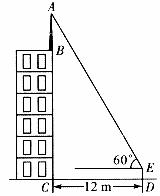 26.(8分)如下图,某建筑物BC的楼顶上有一避雷针AB,在距此建筑物12 m的D处安置一高度为