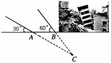 23.某地震救援队探测出某建筑物废墟下方点 C 处有生命迹象,已知废墟一侧地面上两探测点A、B 相距 3 米,探测线与地面的夹角分别是30°和 60°(如图),试确定生命所在点 C 的深度.(结果精确到0.1米,参考数据: