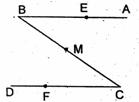 25.(本小题满分10分)如图,公园有一条“z”字形道路ABCD,其中AB∥CD,在E、M、F处各有一个小石凳,且BE=CF,M为BC的中点,请问三个小石凳是否在一条直线上?说出你推断的理由。(提示:连接EM、MF)