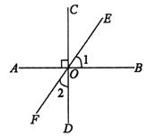 3.已知:如图,AB⊥CD,垂足为O,EF为过点O的一条直线,则∠1与∠2的关系一定成立的是( ).