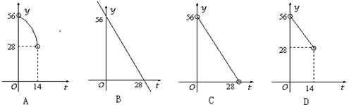 10. 如图,在直角梯形ABCD中,DC∥AB,∠A = 90°,AB = 28cm,DC = 24cm,AD = 4cm,点M从点D出发,以1cm/s的速度向点C运动,点N从点B同时出发,以2cm/s的速度向点A运动,当其中一个动点到达端点停止运动时,另一个动点也随之停止运动.则四边形ADMN的面积y(cm2)与两动点运动的时间t(s)的函数图象大致是( )