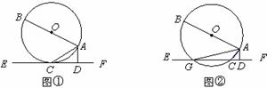 (2)若把直线EF向上平行移动,如图②,EF交⊙O于G.C两点,若题中的其它条件不变,这时与∠DAC相等的角是哪一个?为什么?