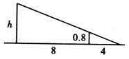 14.如下图,小伟在打网球时,击球点距离球网的水平距离是8 m,已知网高是0.8 m,要使球恰好能打过网,而且落在离网4 m的位置,则球拍击球的高度h为_________m.