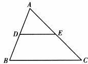 7.如下图,在△ABC中,D、E分别是AB、AC的中点,BC=12,则DE的长是 ( )