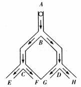 9.如图,一个小球从A点沿制定的轨道下落,在每个交叉口都有向左或向右两种机会均等的结果,小球最终到达H点的概率是 ( )