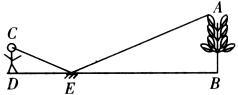 20.为了测量校园水平地面上一棵不可攀的树的高度,学校数学兴趣小组做了如下的探索.根据光的反射定律,利用一面镜子和一根皮尺,设计如下图所示的测量方案:把一面很小的镜子放在离树底(B)8.4 m的点E处,然后沿着直线BE后退到点D,这时恰好在镜子里看到树梢顶点A,再用皮尺量得DE=2.4 m,观察者目高CD=1.6 m,则树(AB)的高度约为______m.(精确到0.1 m)