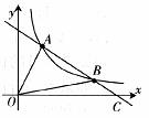在第一象限相交于A(a,3)、B(6,b)两点,且与x轴交于点C.