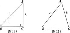 (1)当∠C=900时(如图(1)),用b、c及∠A的三角函数表示△ABC的面积.