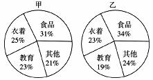 3.下图是甲、乙两户居民家庭全年支出费用的扇形统计图.根据统计图,下面对这两户全年食品支出费用判断正确的是( )