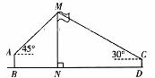 18.如图,某数学兴趣小组在活动课上测量学校旗杆的高度.已知小明的眼睛与地面的距离(AB)是l.7m,看旗杆顶部M的仰角为450;小红的眼睛与地面的距离(CD)是1.5m,看旗杆顶部M的仰角为300.两人相距28米且位于旗杆两侧(点B、N、D在同一条直线上).