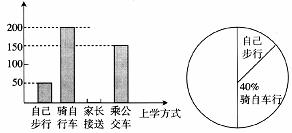 13.某学校调查了部分学生的上学方式,共有自己步行、骑自行车、家长接送和乘公交车四种形式.现将收集的数据通过整理后,绘出下面的条形图和扇形图(还未完成),请根据图表中的数据解答下列问题: