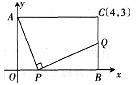 22.以矩形AOBC的顶点O为原点建立如图直角坐标系,顶点C的坐标是(4,3),P、Q分别是边OB、BC上的动点,P从O出发,沿OB方向移动,同时Q从B出发沿BC方向移动,在移动过程中,始终保持∠APQ=900.