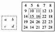 10.下图是一个数表,现用一个矩形在数表中任意框出4个数,则当