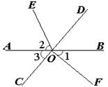 20.如图所示,直线AB、CD相交于O,OE平分∠AOD,∠FOC=900,∠1=400,求∠2和∠3的度数。