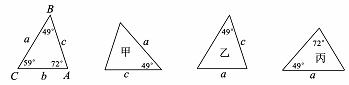 6、如图, 已知△ABC的六个元素, 则下面甲、乙、丙3个三角形中和△ABC全等的图形是( )(考察三角形全等的判定)