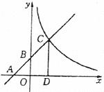 轴分别交于A、B点,且与反比例函数