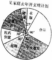 21.(7分)下图是某家庭去年开支的扇形统计图,根据统计图,回答下列问题: