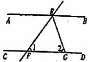 22.(7分)如图,AB∥CD,直线EF分别交AB、CD于点E、F,EG平分∠BEF,交CD于点G,∠1=50°.求∠2的度数。