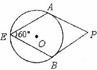19.如图,PA、PB分别切⊙O于点A、B,点E是⊙O上一点,且