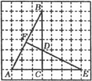 22.(本题满分12分)如图,网格中的每个小正方形的边长都是1,每个小正方形的顶点叫做格点.△ACB和△DCE的顶点都在格点上,ED的延长线交AB于点F.