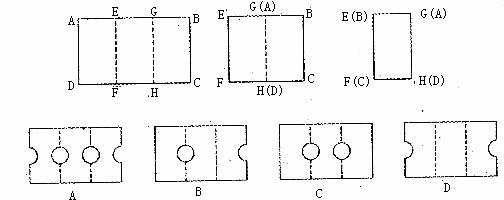 12.如下图所示,将矩形纸片ABCD沿虚线EF折叠,使点A落在点G上,点D落在点H上;然后再沿虚线GH折叠,使B落在点E上,点C落在点F上;叠完后,剪一个直径在BC上的半圆,再展开,则展开后的图形为( )