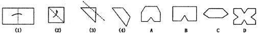 12.将一张2:1的长方形纸片按如图(1)(2)所示方式对折,然后沿(3)中虚线裁剪,得到图(4),最后将图(4)展开铺平,则所得图案为 ( )