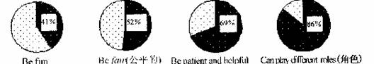 最近,《晨晖英语报》以“你心目中的好老师是什么样的?”“一名受欢迎的老师应该有什么样的特点?”为题展开了调查和讨论,结果如下(黑影部分)