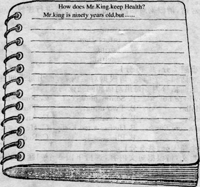 每年4月7日是世界健康日(World Health Day)。假设你是一名记者,采访了今年90岁的Mr.King。请发挥你的想象力,以How does Mr.King keep Healthy?为题写一篇介绍Mr.King健康的饮食习惯和生活方式的小短文。提示词:eat sleep take exercise drink healthy lifestyle happy写作要求:1.意思连贯、符合逻辑;