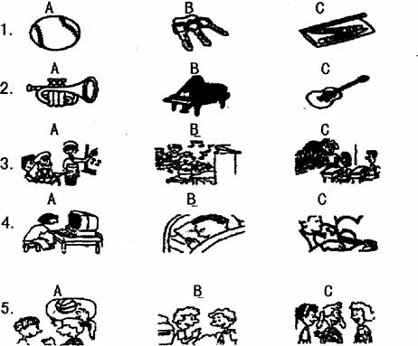 (一)听对话,选择适当的图片。每段对话听两遍。