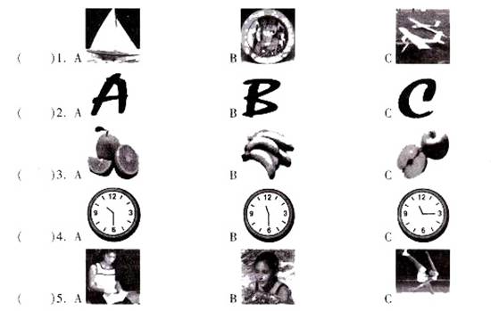 (A)听录音选图片,从各题的三个选项中选出一个正确答案,并将其代表字母填在题前括号内。(录音播放一遍)