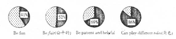 最近,《晨晖英语报》以“你心目中的好老师是什么样子的?”“一名受欢迎的老师应该有什么样的特点?”为题展开r调查和讨论,结果如下(黑影部分):