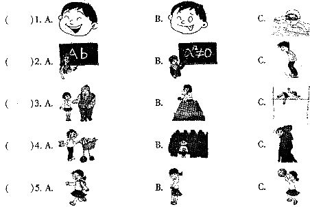 Ⅰ.听句子。选出与内容相符的图画。(5分)