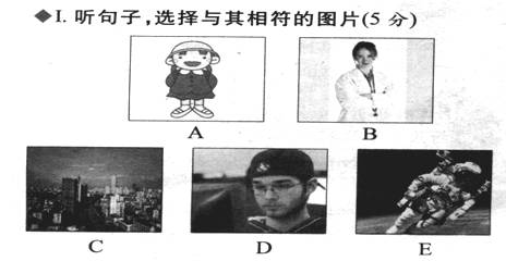 i.听句子,选择与其内容相符的图片.录音听一遍。(5分)