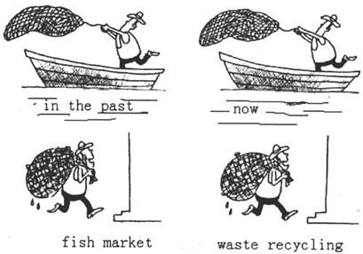 根据图画写一篇至少80字的英语短文。要求叙述完整,表达准确,并提出对这种现象的看法和建议。
