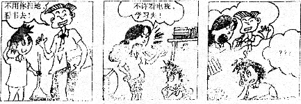 仔细观察下图,假如你是图中的学生,根据图示写一篇日记,将昨天的下午放学回家后发生的事情和你对这种事情的看法简述出来。词数80左右。注意不要使用真实姓名。