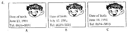 (一)录音中有五个句子,每个句子听两遍,然后在每小题A.B、C三个选项中,选出你所听到的单词或与所听句子内容一致的图片。