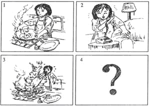 请用一段连贯的文字,描述下面三幅图中所展示的内容,并根据生活常识,发挥想象力,续写第四幅图可能发生的事情。词数:80-100词。