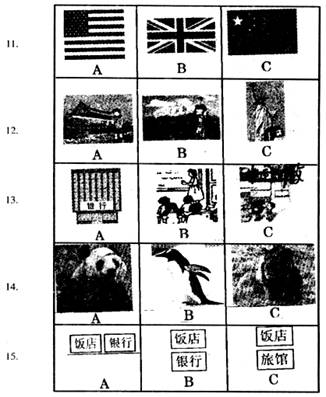 (一)听录音中的五个句子,选择与所听句子相符合的图画。(每小题1分,共5分)