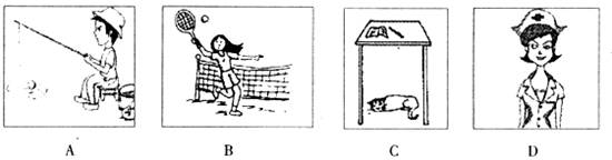 (一)录音中有四组句子,每组句子读一遍,然后从每组的A、B、C三个句子中选择一个与图画内容相符合的选项。