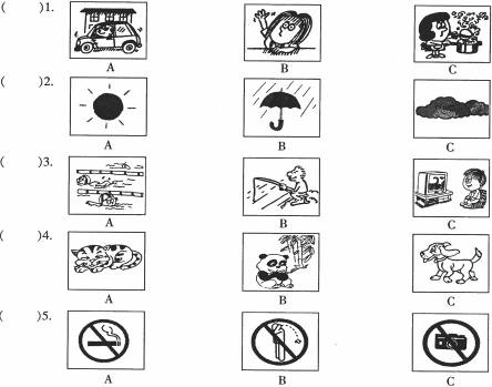 I.听句子,选出与所听句子内容相匹配的图画。(本题共 5 分,每小题 1 分)