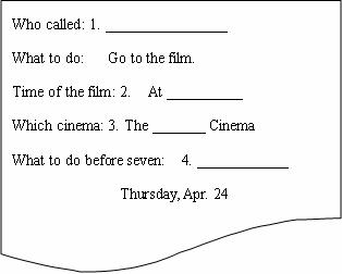 请根据对话内容和表格中的提示词,将所缺的表达关键信息的词或短语填写在下面的对应空格上。对话读三遍。
