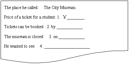 请根据对话内容和表格中的提示词,将所缺的表达关键信息的词或短语填写在下面的对应空格上。对话读三遍。